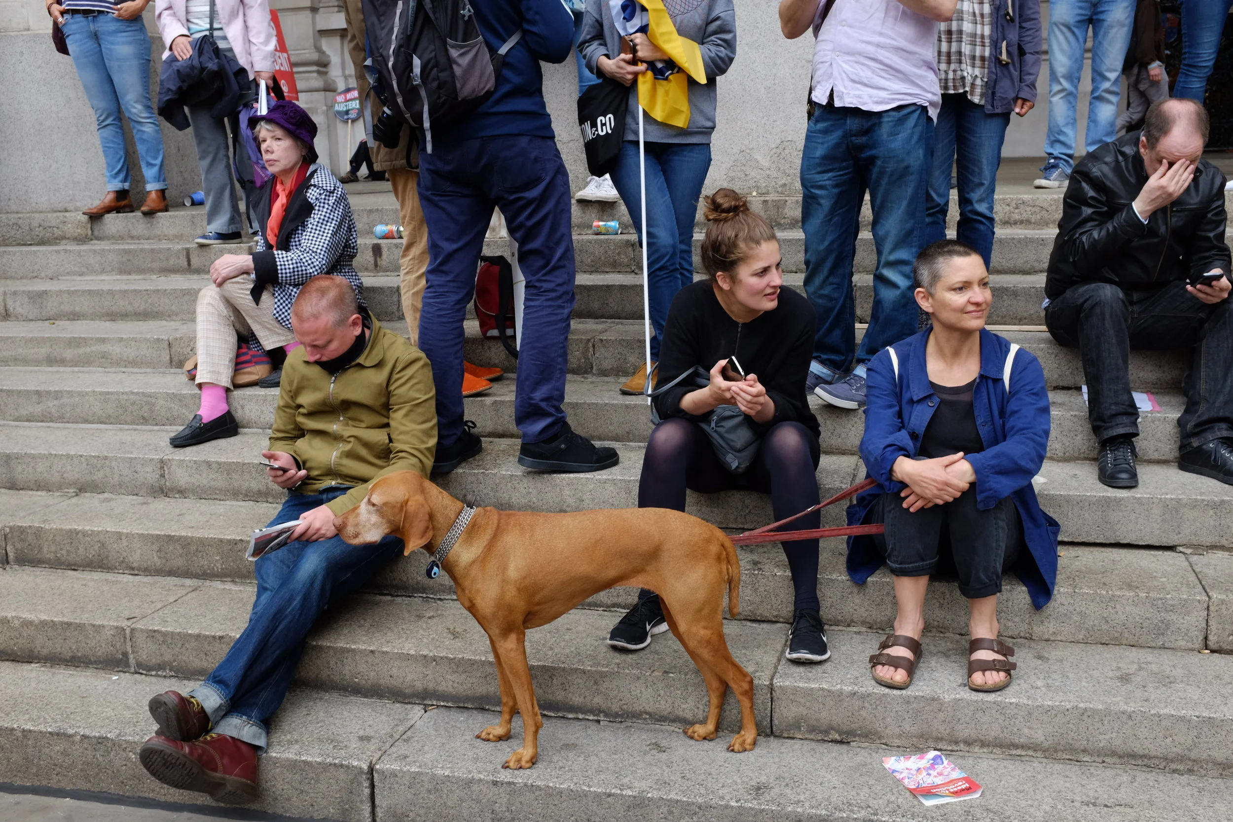 Against this background, and soon after the election, a number of marches were held to oppose the mantra of austerity. The following pictures were taken at the commencement of the largest march - the one held in London on June 20th starting at the Bank of England in the City and finishing at Parliament Square. Tens of thousands of people attended and these pictures are an attempt to capture the atmosphere of that gathering. In particular they highlight the diversity of the participants. A mix of people, of of all backgrounds and sensibilities.